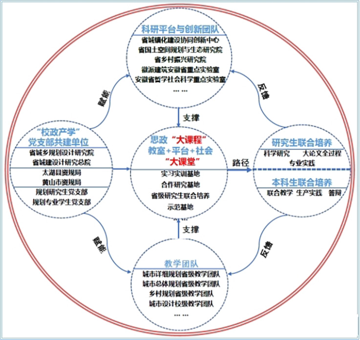 探索形成了“多维融合,多能并举,多方协同,特色培养”的专业人才特色培养模式。2020年获批安徽省示范基层教学组织,获批国家级新工科研究与实践项目1项,2019年以来获得省级教学成果奖6项;连续两年获批课程思政示范课程,教学研究项目10余项;获批教学名师3人,高水平导师1人;现有城市总体规划、城市详细规划以及乡村规划三个省级教学团队和城市设计校级教学团队;主编《国土空间规划导论》《城乡生态与环境规划》等教材获批省级一流教材,参编《城市交通系统工程规划》获批住建部“十四五”规划教材;连续12年组织参加全国城乡规划专业“7+1”联合毕业设计教学活动,核心设计课程实现联合教学全覆盖。近三年获得各类国家级专业竞赛获奖10余项。