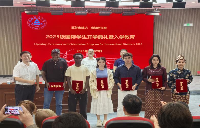 典礼特别设置了2024级国际学生表彰环节。 “跨文化之星奖” “学术卓越奖”“校园友谊大使奖”“文体贡献奖”四项荣誉的颁发,不仅是对优秀国际学子过去一年努力的高度肯定,也为新生们树立了身边的学习榜样。简朴而庄重的颁奖仪式将现场气氛推向高潮,象征着安建大国际学生教育中鼓励全面发展、弘扬积极向上的育人导向。