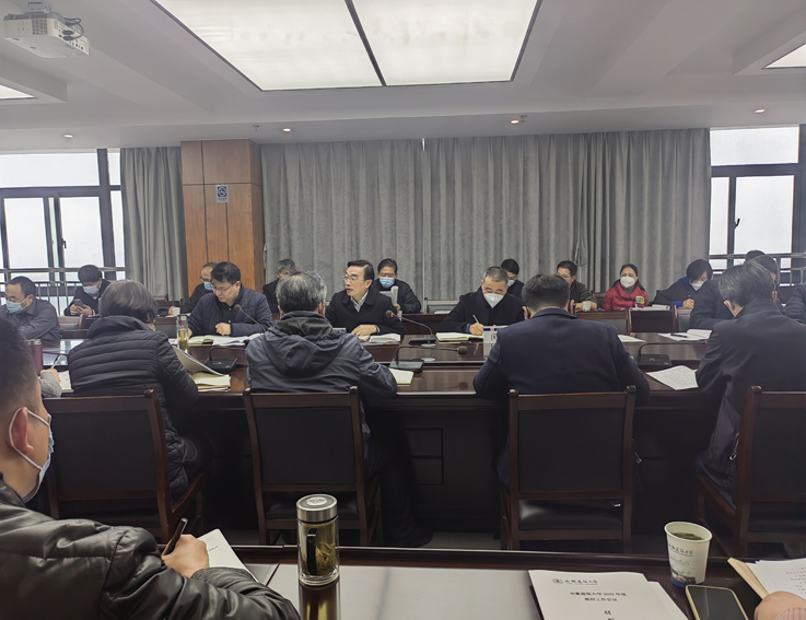本网讯 1月12日,学校在南校区实验综合楼21楼第三会议室召开2022年度教材工作会议,校领导孙道胜、闵杰出席会议,教材工作领导小组全体成员及教务处相关工作人员参加会议,副校长闵杰主持会议。